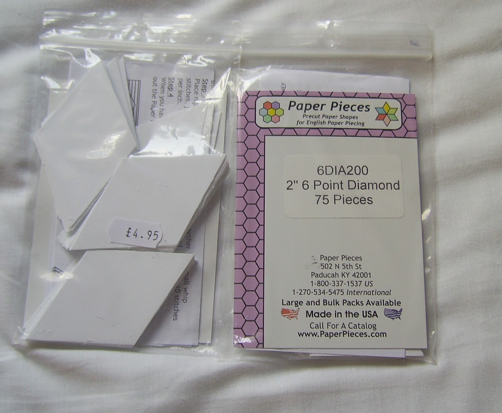 I could, and have in the past, cut these paper templates myself, but it is tedious mind numbing work by hand. I could, and have thought about buying a cutting machine that would cut papers and fabric, The cost, waste and room to store it has put me off so far. I am careful when I EPP not to stitch into the papers so that I can use them several times. Perhaps one day I will change my mind.
